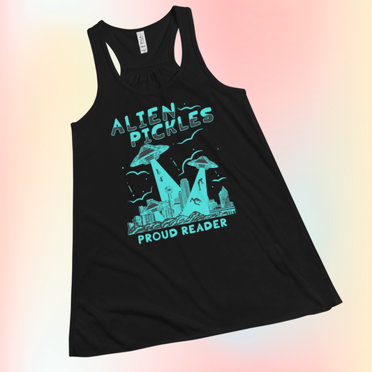 Alien Pickles – Proud Reader – Women’s Flowy Racerback Tank – Teal Design