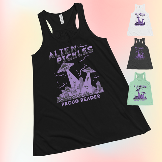 Alien Pickles – Proud Reader – Women’s Flowy Racerback Tank – Lavender Design