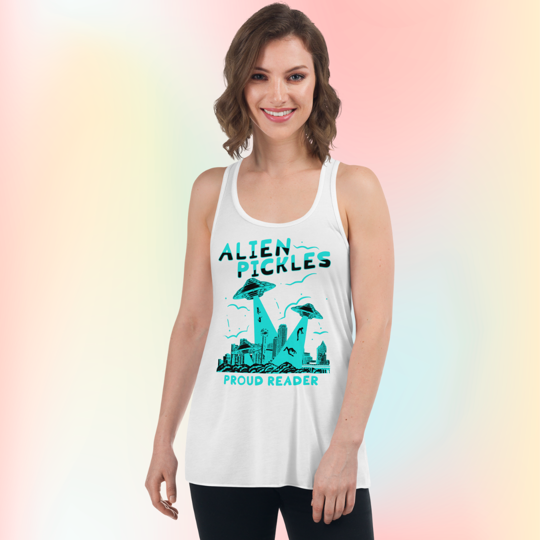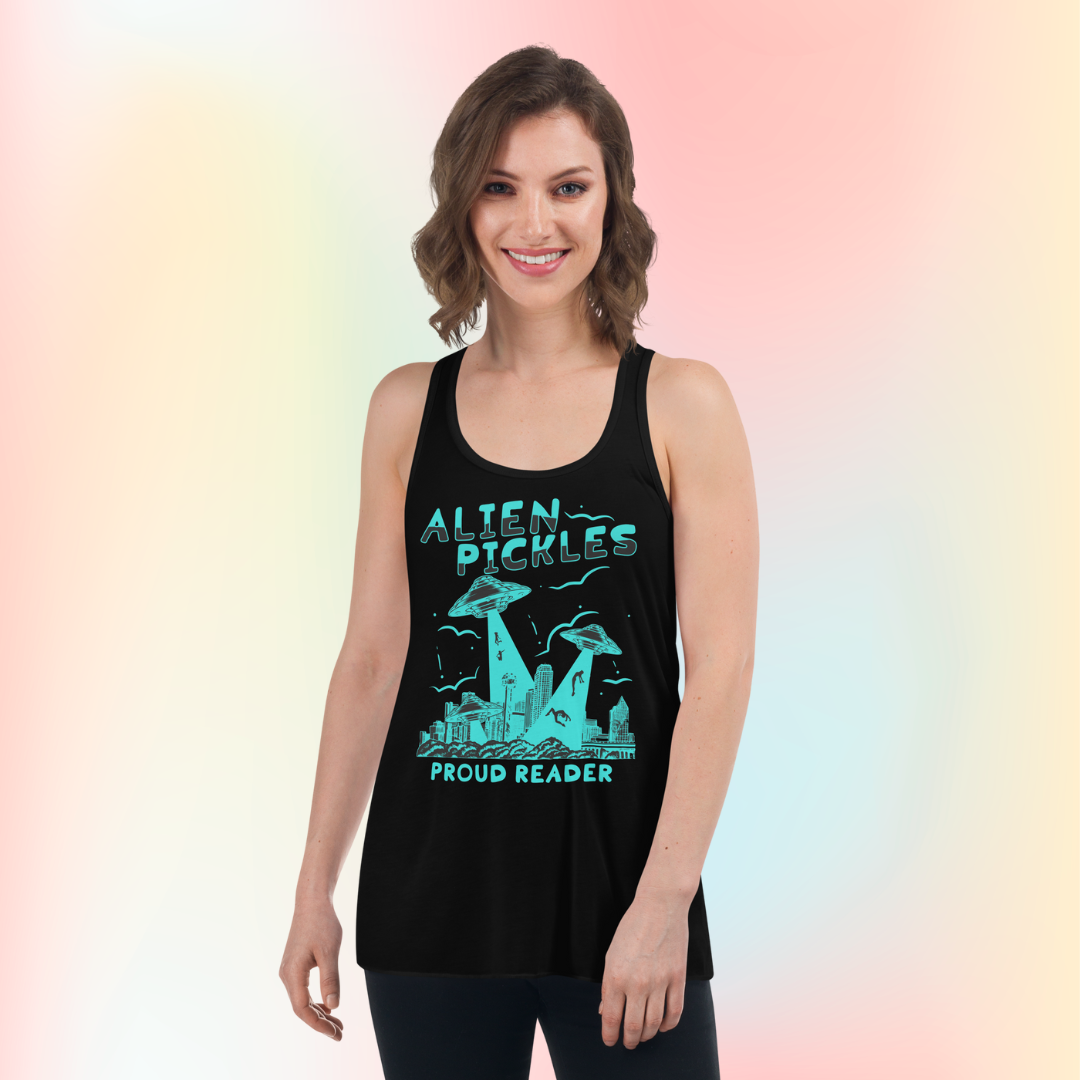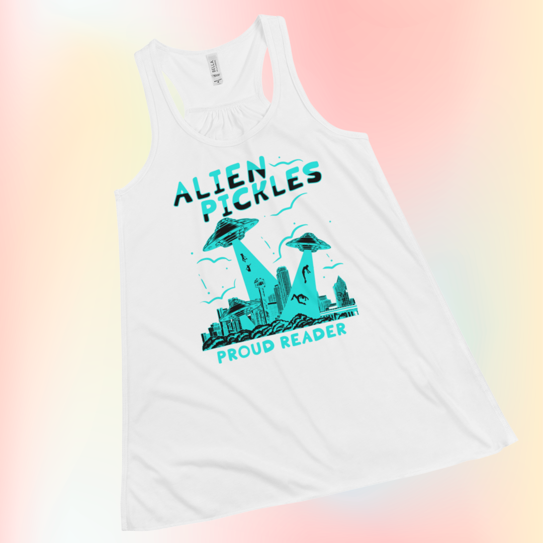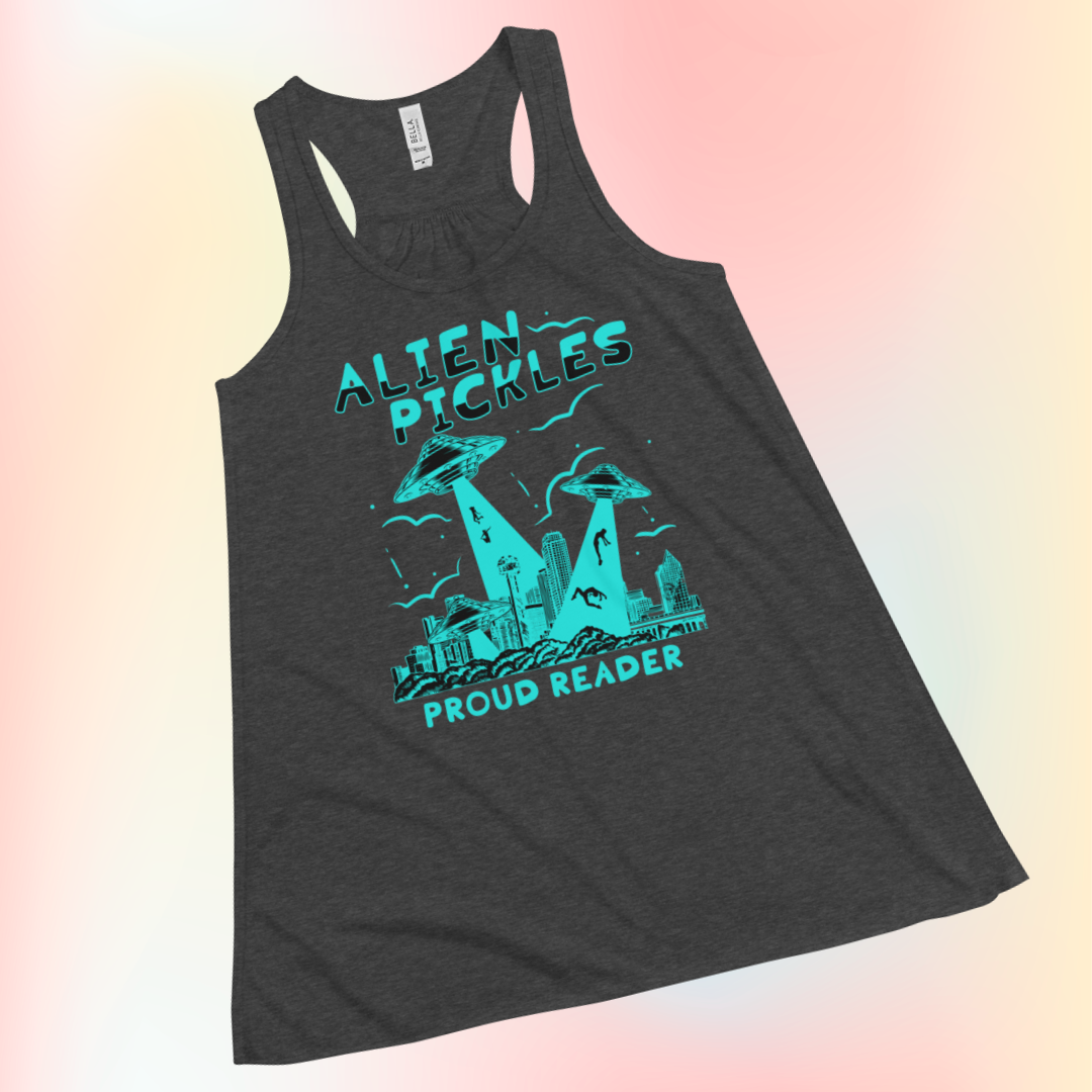Are you a lover of alien pickles? Are you a proud sci-fi romance reader? Then, this is for you! This racerback tank is soft with a loose, flowy fit. The shirring on the back also adds some feminine detail.